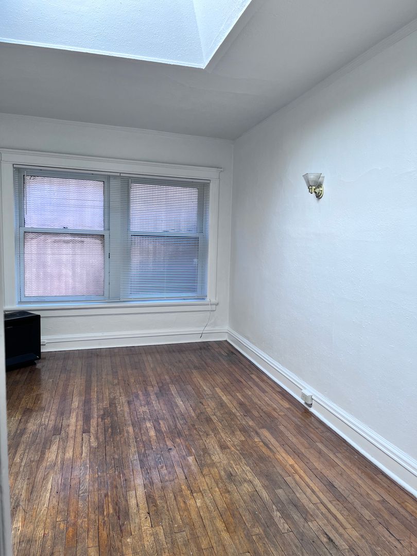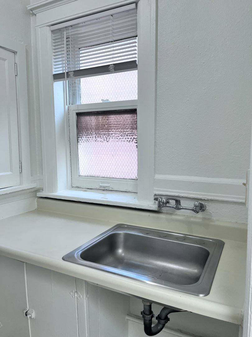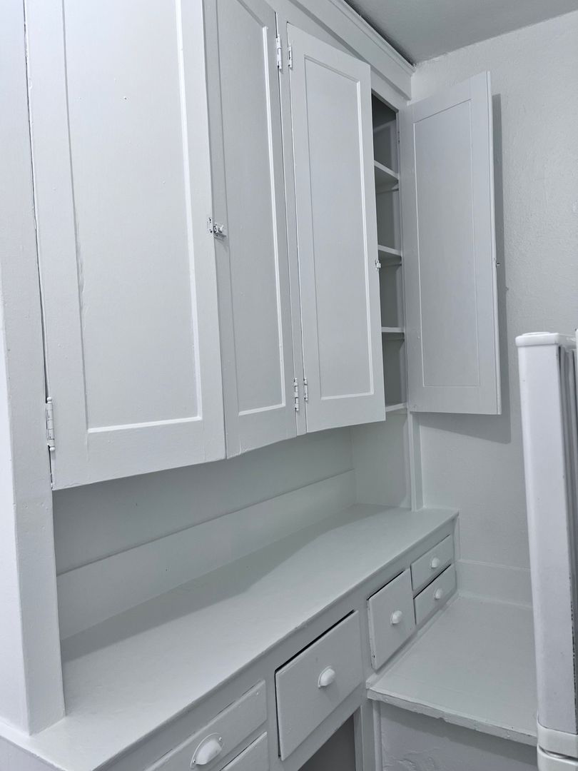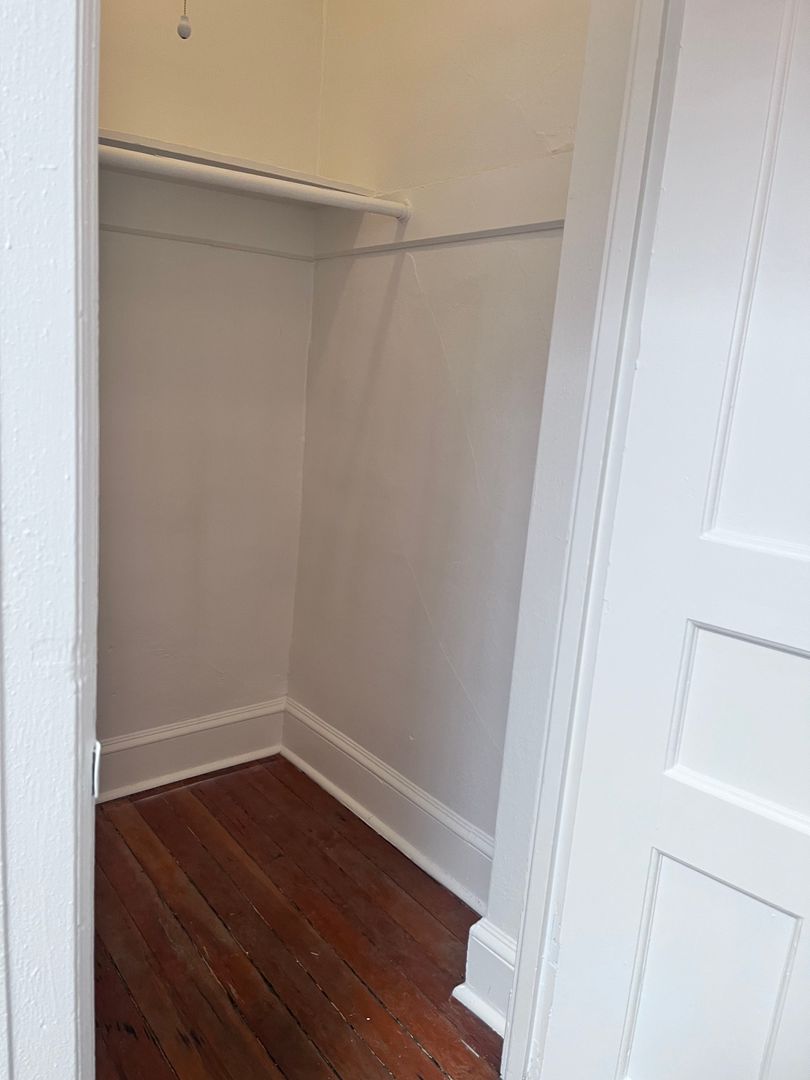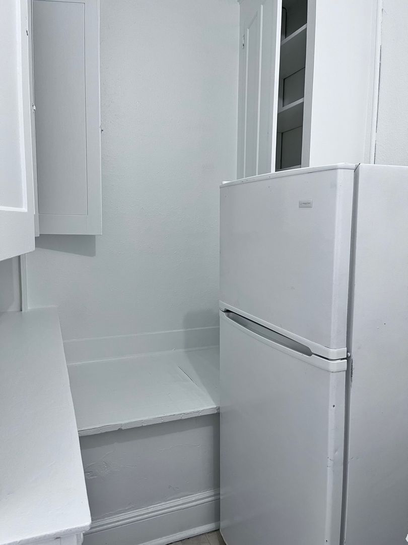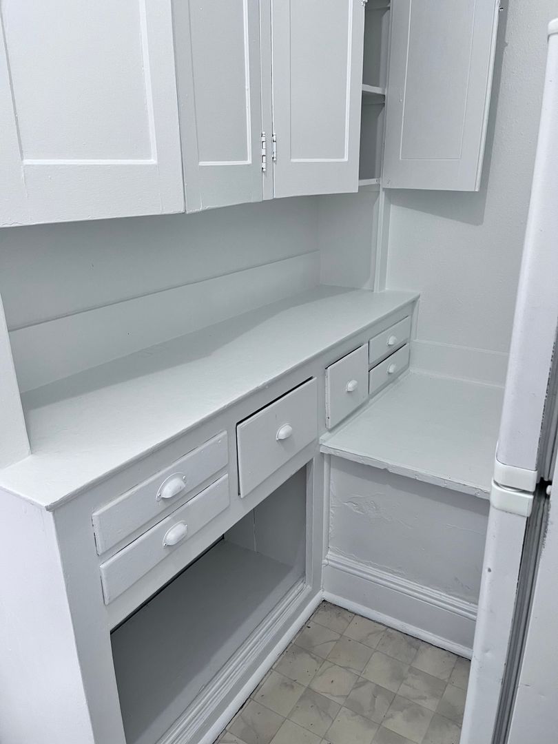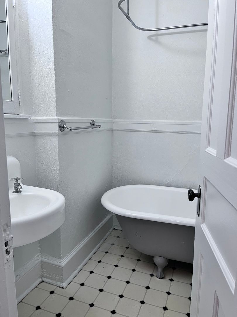 This studio apartment at Edington Court offers a charming blend of historic features and modern convenience. With its original hardwood floors, large windows inviting ample natural light, and clawfoot tubs, it exudes a sense of spaciousness and character. The kitchen maintains its old-world charm with built-in cabinets and a gas range, perfect for those who appreciate vintage aesthetics combined with functionality.